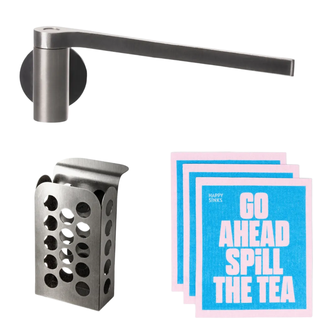 Tämä laadukas setti sisältää ruostumattomasta teräksestä valmistetun magneettisen tiskirättitelineen, yhteensopivan aterinkorin ja ekologiset, Suomessa valmistetut tiskirätit. Se yhdistää älykkään muotoilun, kestävyyden ja arjen helppouden.